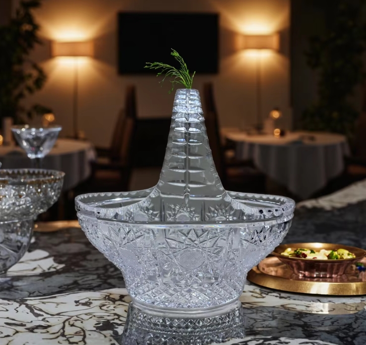 Hand carved crystal fruit basket tableware